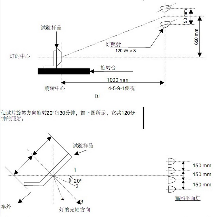 1.4发光方式 : 120W X 8颗 色温 6500K 卤素石英灯(日本原装或德国欧司朗)。